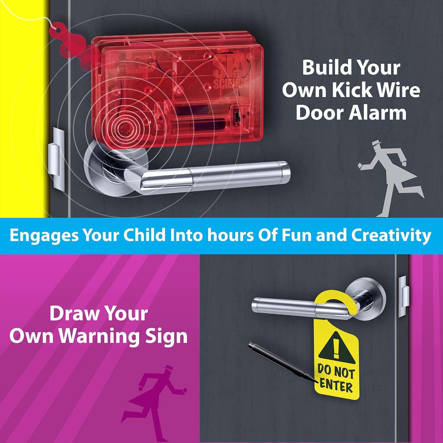 Explore how a magnet sets off this cool intruder alarm. It’s a fun project for exploring how a magnetic switch works in an electric circuit. Suitable for ages 5+, batteries required but not included.