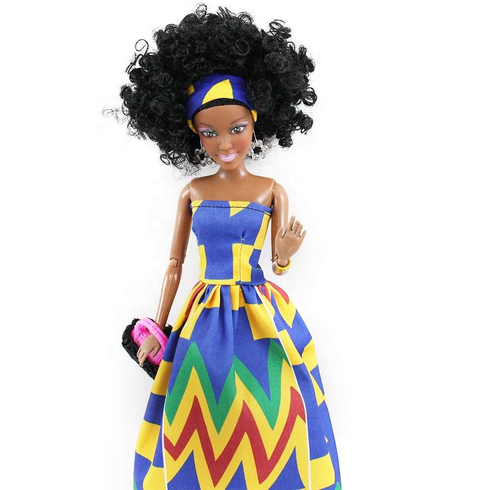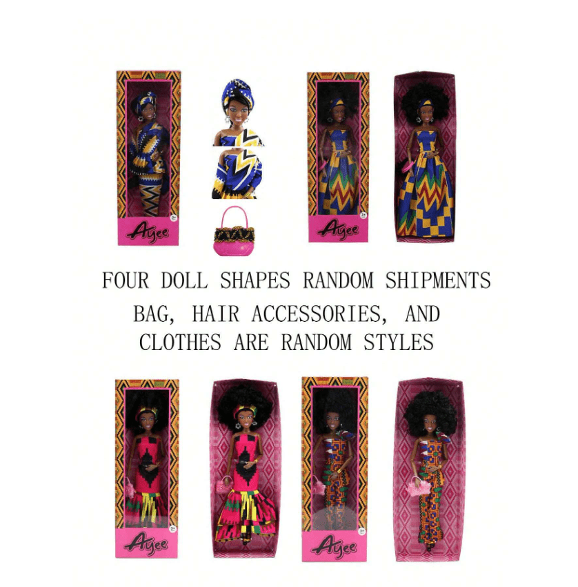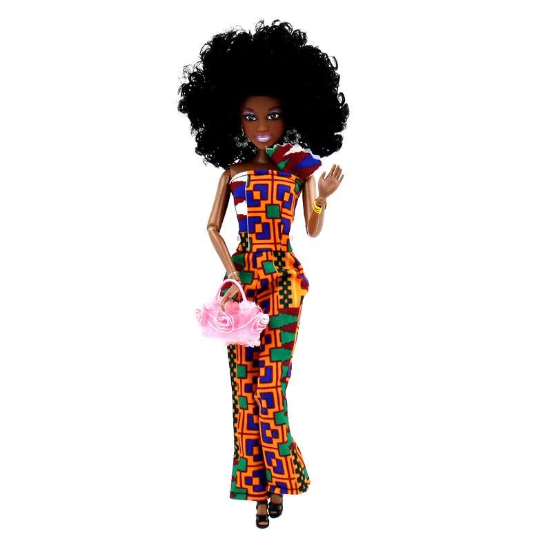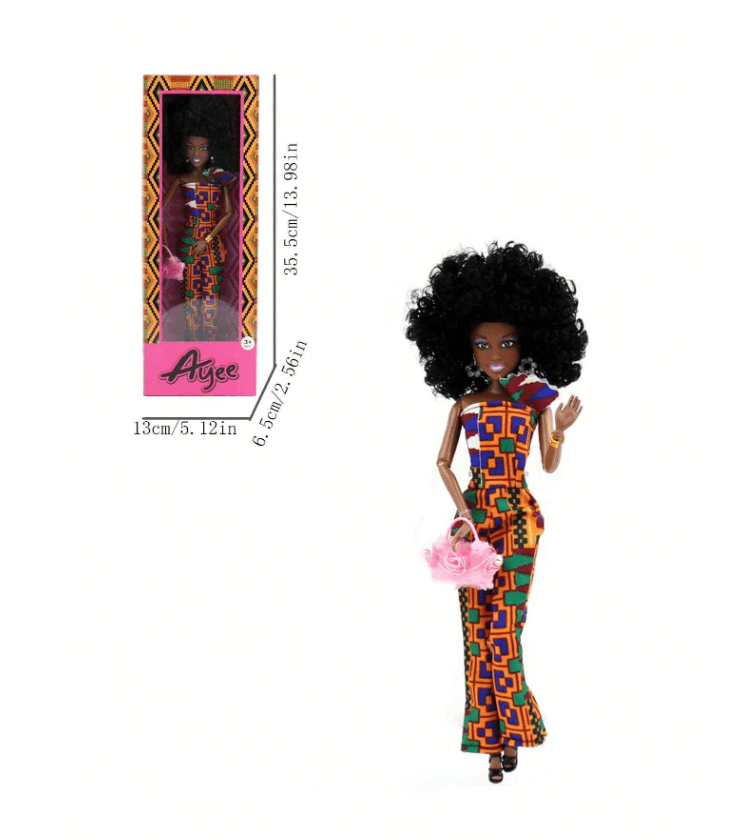 This 12.5-inch beautiful fashion Black doll with natural black hair and nice dress boasts a stunning African-American complexion and features gorgeous black hair that varies in style. The Black/African-American doll stands 12.5 inches in length and is made of high-quality vinyl material, making it durable and perfect for all occasions, like Christmas doll gifts. Included with the Black Barbie doll is a stylish dress that complements its features and adds to its overall charm. With its original unopened packaging, this doll toy makes for a great addition to any collection or a perfect gift for those aged 3 and up. This doll is a must-have for any doll collector and enthusiast.