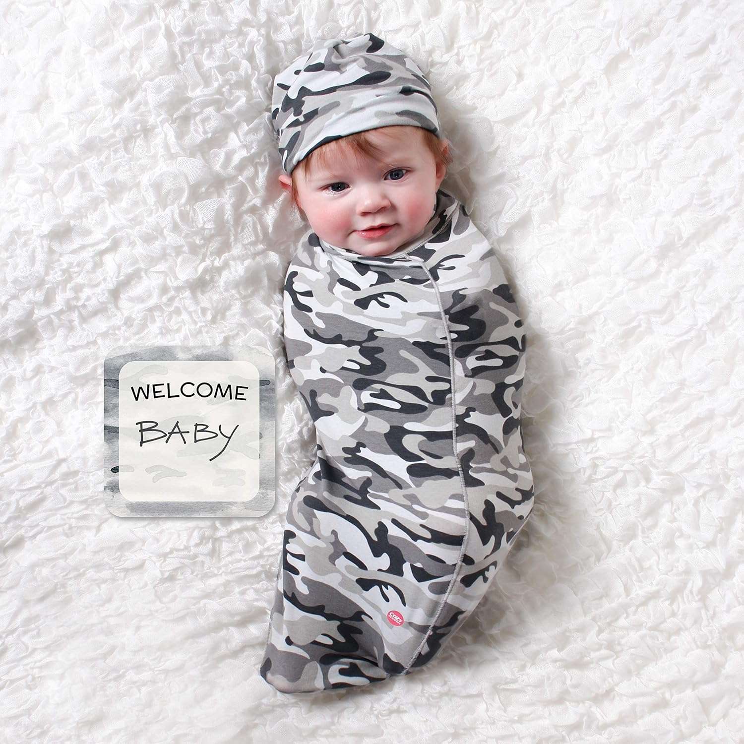 Cozy Cocoon – Swaddle with Hat and Announcement Card – Camo