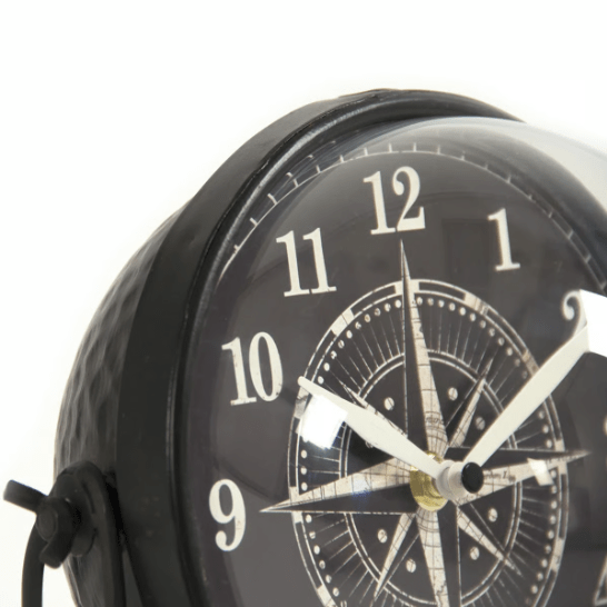 This tabletop clock brings a touch of timeless elegance to your decor. Crafted from sleek metal with a classic black finish, it showcases an analog time display that blends seamlessly with any interior style. The quartz movement ensures precise timekeeping, while its compact design makes it a versatile addition to your mantel, desk, or shelf. With its understated charm, this clock is both a functional timepiece and a stylish accent for your home.