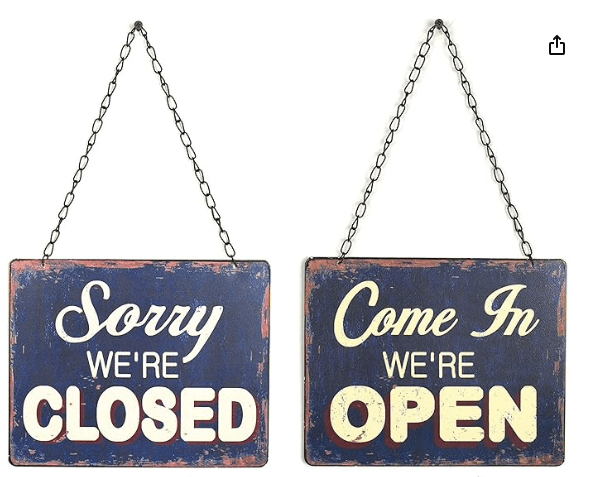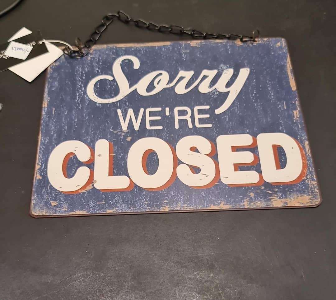 Creative Co-Op – Tin Come in We’re Open & Sorry We’re Closed Two Sided Sign