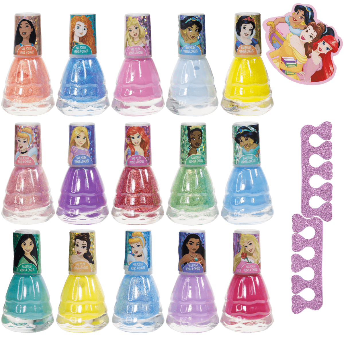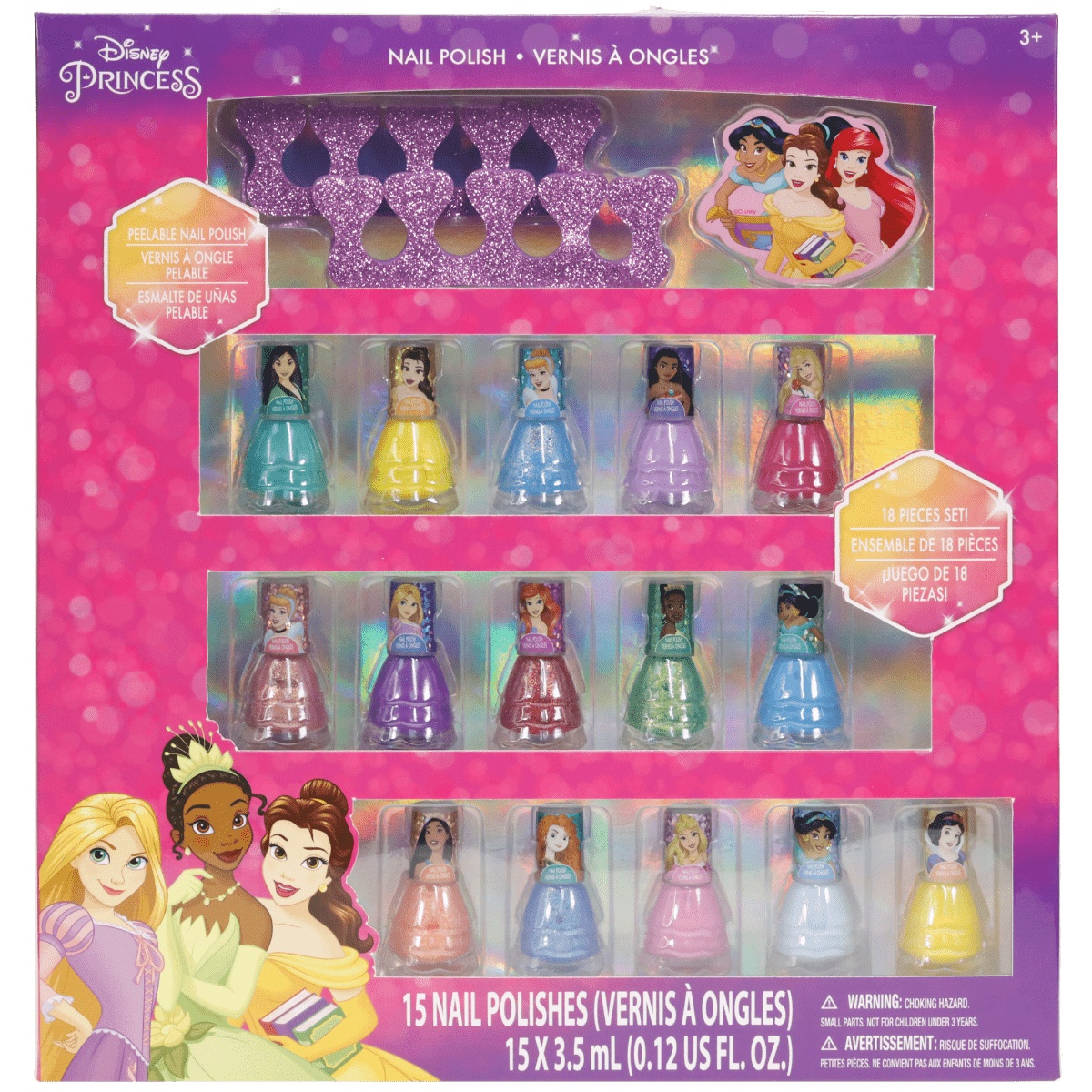 Townley Girl Disney Princess Non-Toxic Peel-Off Water-Based Safe Quick Dry Nail Polish| Gift Kit Set for Kids Girls| Glittery and Opaque Colors| Ages 3+ (18 Pcs)