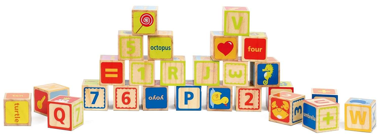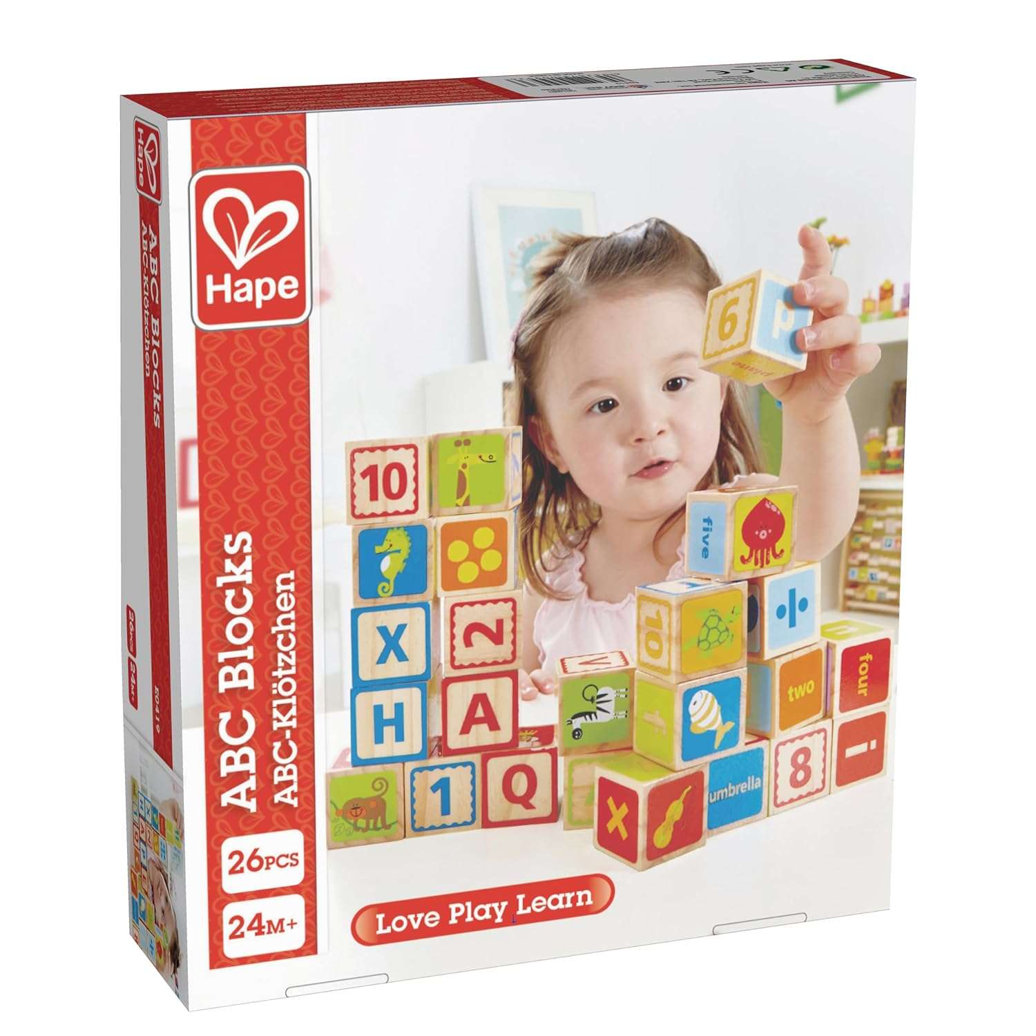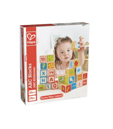 Learning the alphabet has never been more fun! The ABC Blocks Stacking Set combines education and entertainment to provide children a simple way to practice their ABC’s, 123’s and more. These best-selling, innovatively designed blocks feature words, letters, pictures, and numbers painted in bright colors to inspire little builders to stack higher while teaching them to read and count. This set also encourages the development of coordination, fine motor skills, and creative thinking. Made with wood sourced from environmentally sustainable forests. Durable child-safe paint finish and solid wood construction make this a toy your child will love for years to come. Hape toys stimulate children through very stage of development and help nurture and develop their natural abilities. All Hape products sold in North America meet or exceed all applicable safety standards.