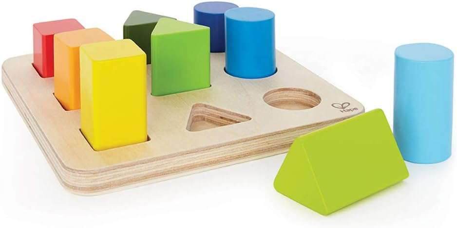 - SHAPES & COLORS PUZZLE: Make learning powerful and fun through every stage of life. Includes 9 different pegs with 3 distinct basic shapes