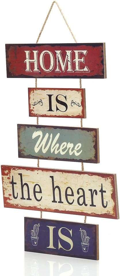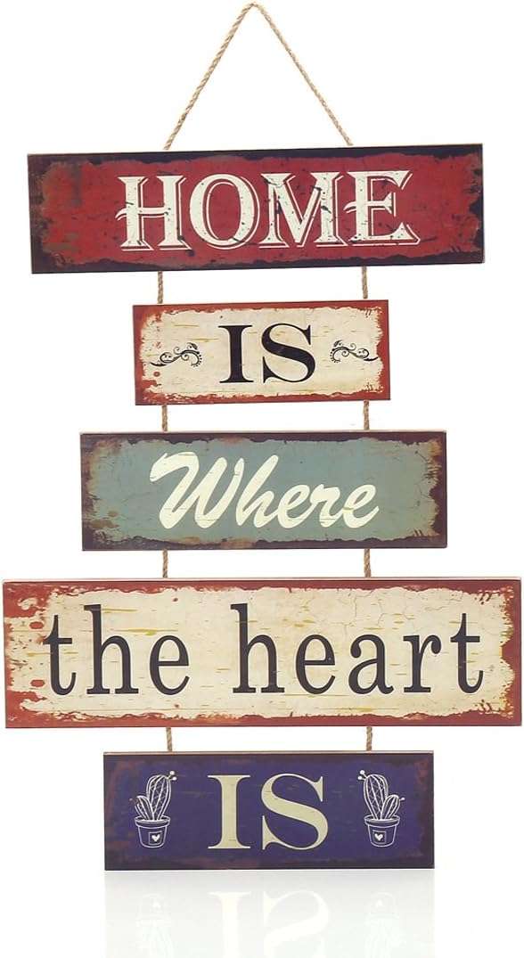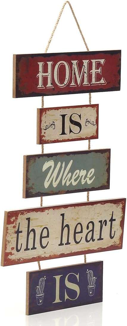 16.8″x12″ Wood Fun Decorative 5-plate Welcome Hanging Plaque Sign (Home is Where the Heart Is)