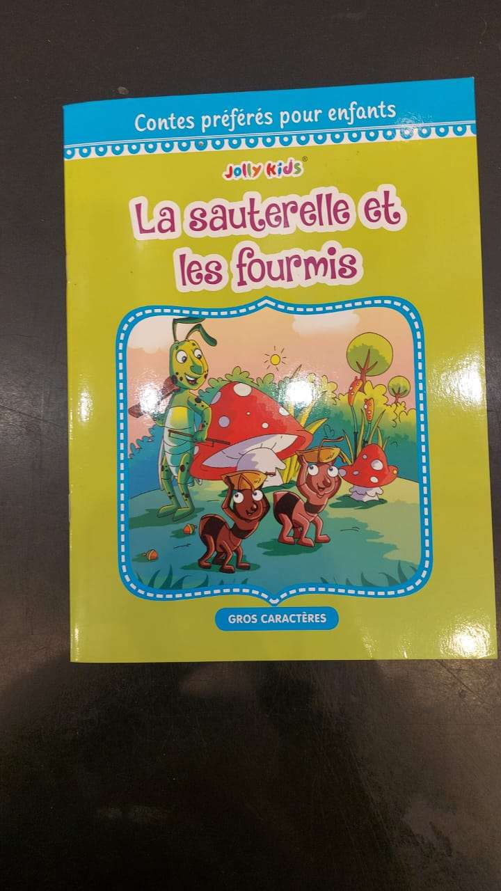 A children’s book titled “La sauterelle et les fourmis,” which translates to “The Grasshopper and the Ants.”