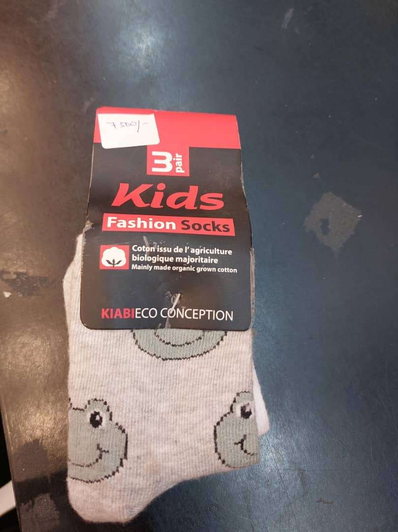 This is a 3-pair pack of Kiabi Kids fashion socks mainly made of organic grown cotton, featuring a grey frog design.