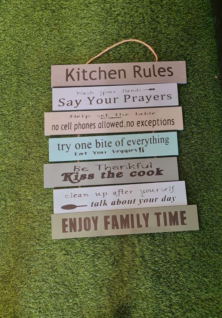 - RasuDecor’s RUSTIC WALL DÉCOR 【ELEGANT DESIGN】Retro style wooden hanging home wall decor sign, display nicely in your home or office. The panels are connected with simple ropes, printed with inspirational words. This shabby chic wall décor sign brings a unique and elegant touch to your home! This sign displays encouraging words that serve as wonderful reminders. This farmhouse decoration has a wooden look that makes a perfect home accessory that is suitable for indoor or outdoor hanging.