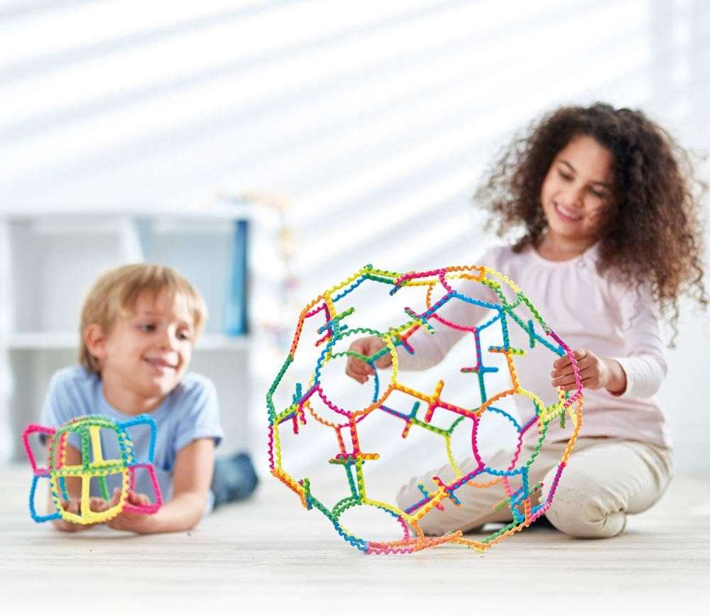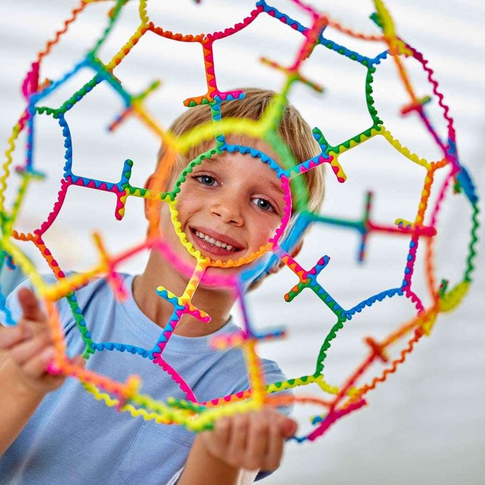 • A fun and colourful way to explore 2D and 3D geometry with this unique construction toy