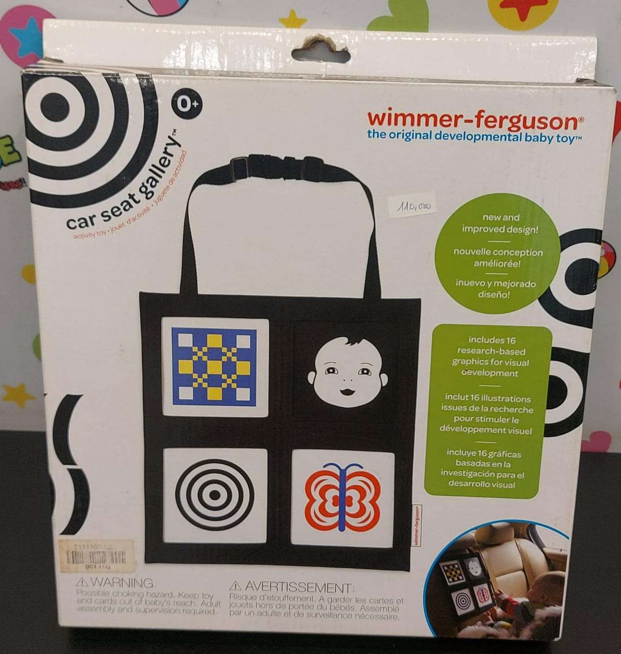 - VISUALLY APPEALING HIGH CONTRAST TOY FOR INFANTS: Professional research has shown that newborns are more attracted to high-contrast patterns than to color or brightness alone. The Wimmer-Ferguson Travel Activity Car Seat Gallery was designed for this purpose, encouraging baby to learn pattern recognition.