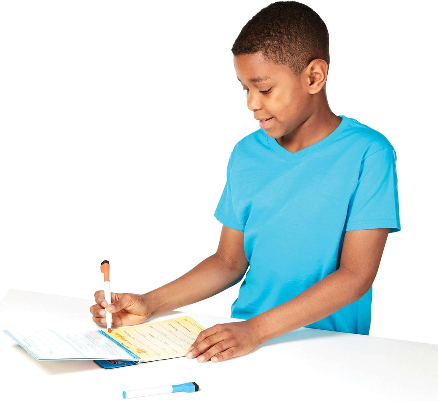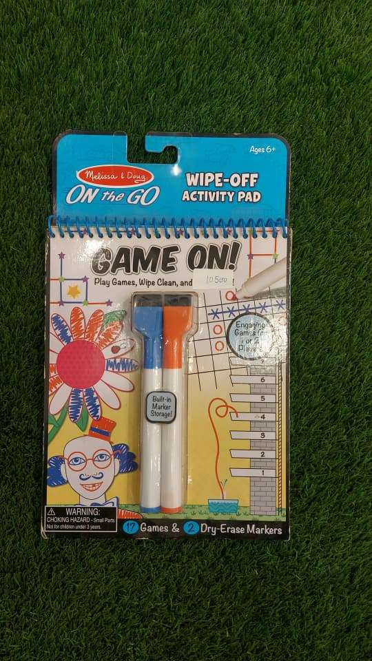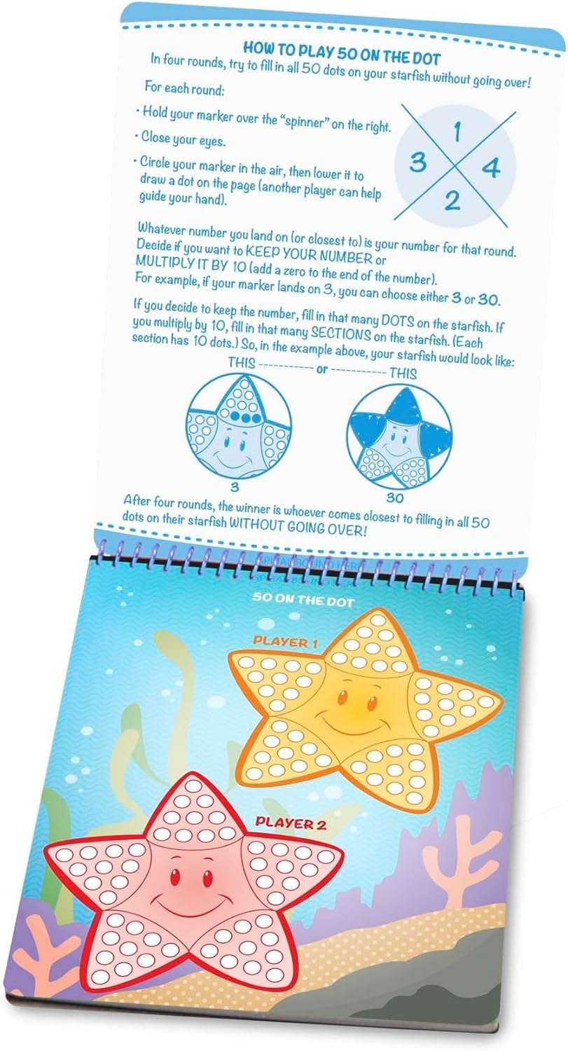 - Activity book of reusable word, number, and picture games for one or two players to do with dry-erase markers