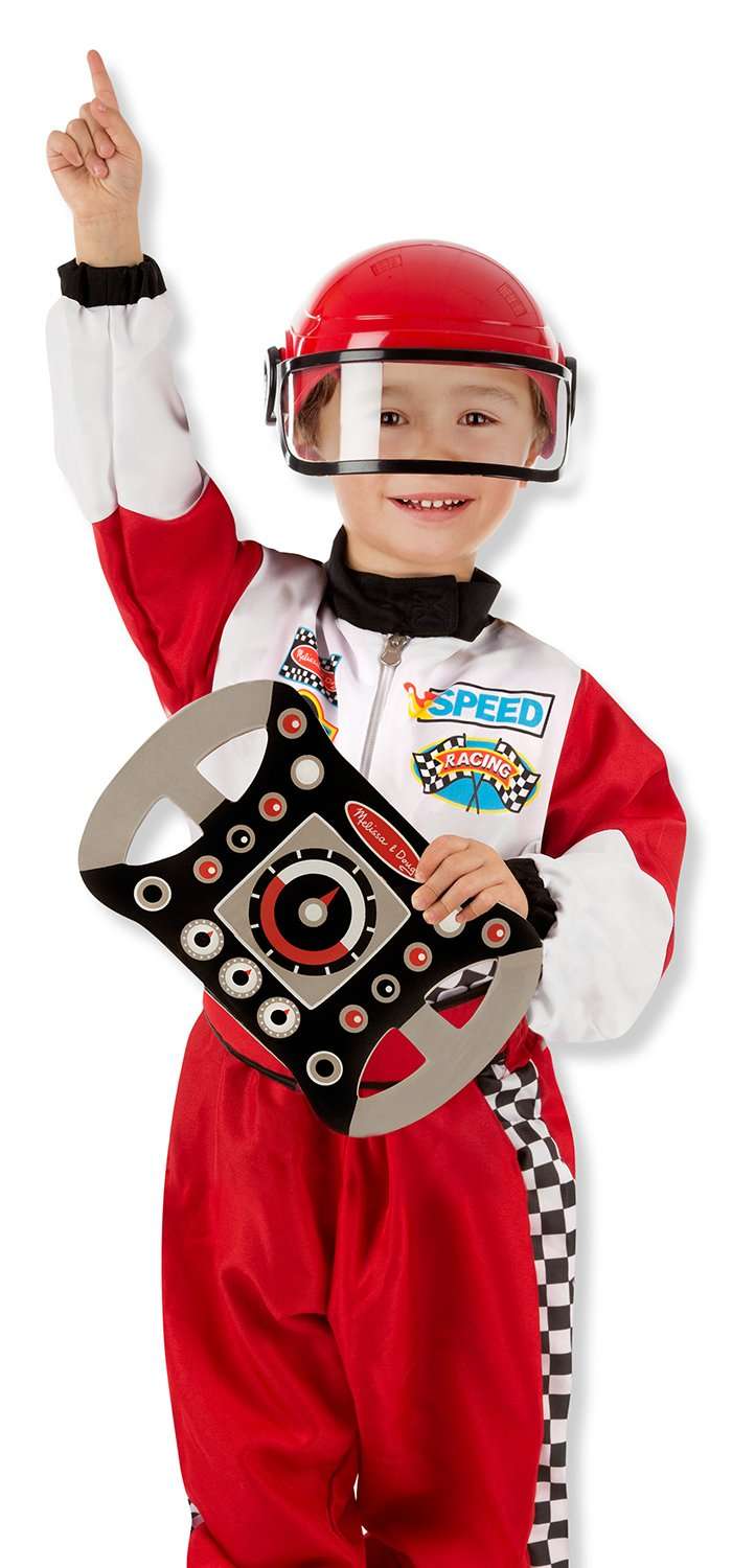 Melissa & Doug Race Car Driver Role Play Costume Set (3 Pieces) – Jumpsuit, Helmet, Steering Wheel
