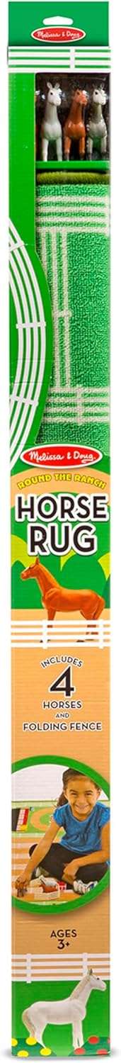 Melissa & Doug Round the Ranch Horse Rug – Colorful Equestrian-Themed Play Mat with 4 Horse Figurines