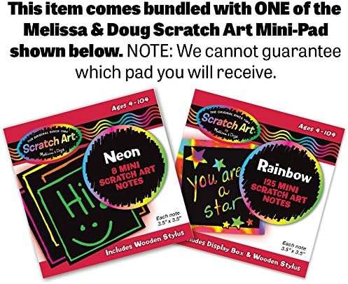 • ONE FREE Melissa & Doug Scratch Art Mini-Pad is bundled with this item. The style of the mini-pad you receive is randomly picked. The Scratch Art Mini-Pad is considered a FREE bundled item. If you return this item, please return it as well.