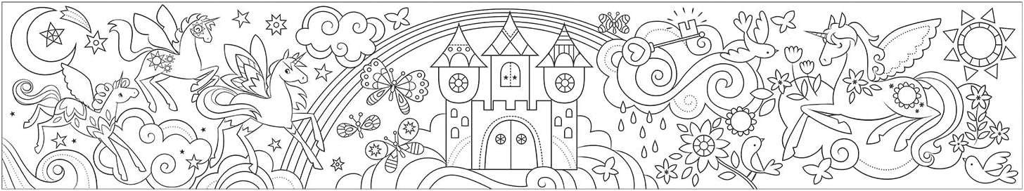 • CONTINUOUS COLORING ROLL – Enjoy creative fun with the Unicorn Magic Mini Coloring Roll from Mudpuppy. It’s roll-out art paper that features continuous pictures and designs for kids to color, measuring 5.5” x 30”.