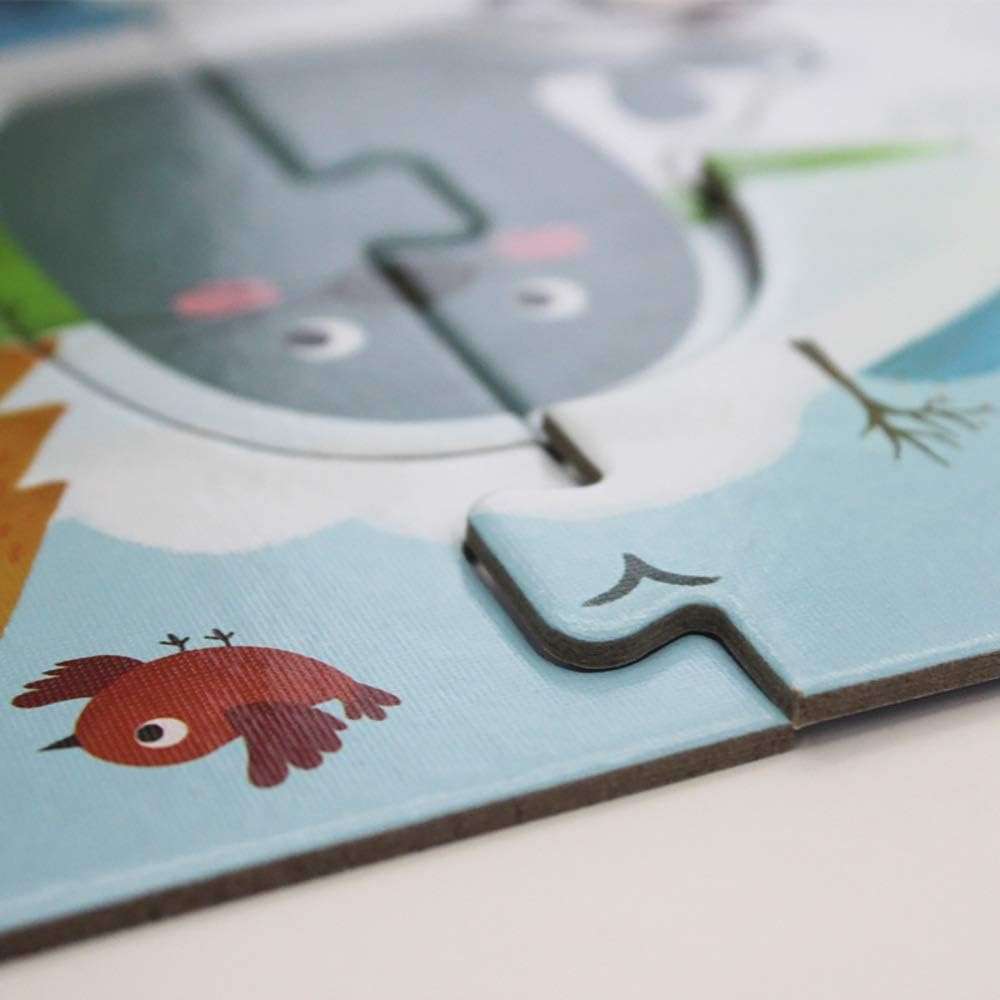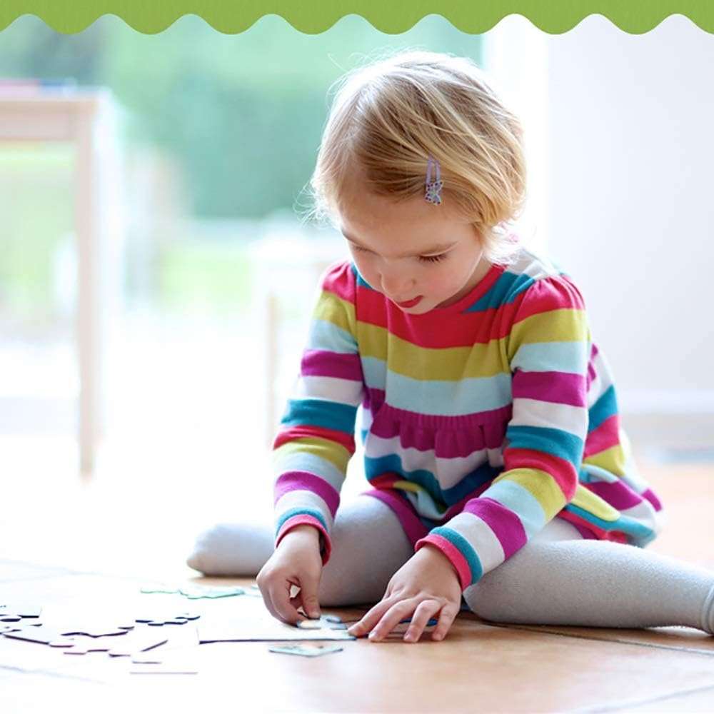 - The shaped puzzles have progressive piece counts (2-5 pcs each), which children can put together before advancing to the full puzzle scene!