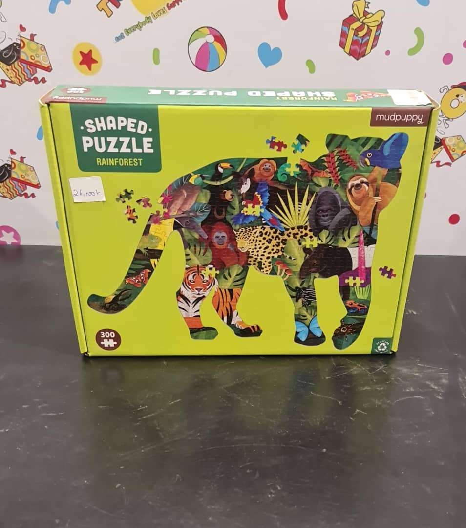 - 🌿 300-PIECE RAINFOREST SHAPED PUZZLE – Embark on an adventure in the wild with the 300-piece Rainforest Shaped Scene Puzzle, ideal for kids ages 7 and up. With a finished size of 23” x 16”, this fun and engaging puzzle offers a stimulating challenge for the entire family. Whether assembling it alone or as a group, young puzzle enthusiasts will enjoy exploring the vibrant world of the rainforest, piece by piece, while learning about the diverse creatures that inhabit it.