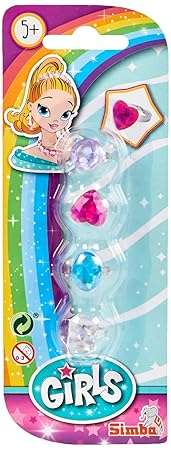 Twinkling diamond rings in various colours and shapes, 4 pcs., Blk, 5y plus.