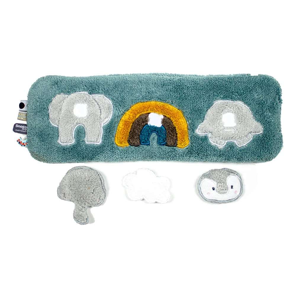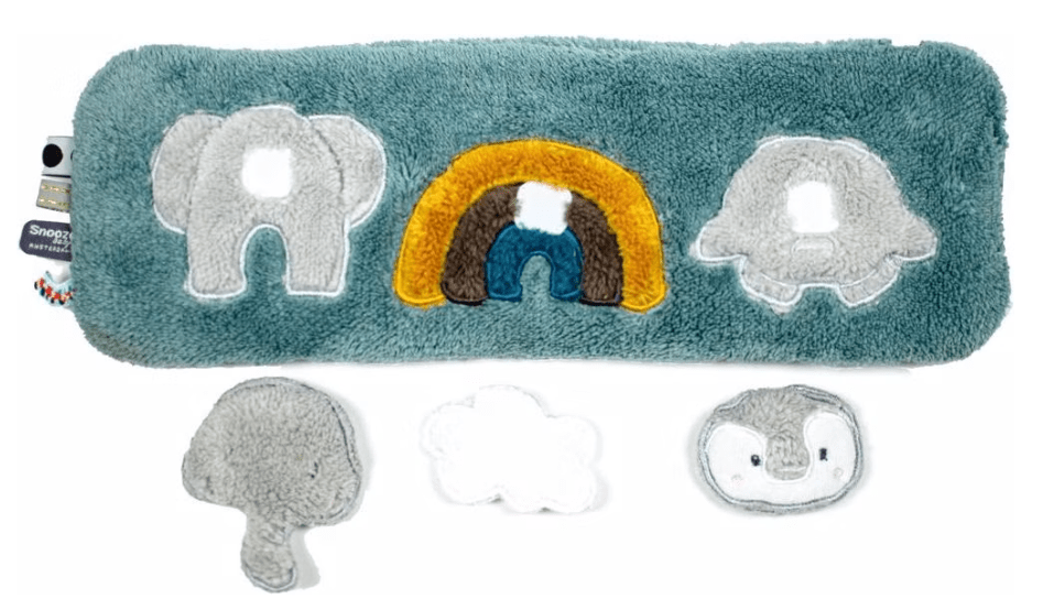 A true baby´s friend. The Activity Pillow from SnoozeBaby helps your baby develop a better sense of touch and memory through playful interaction and interesting design.