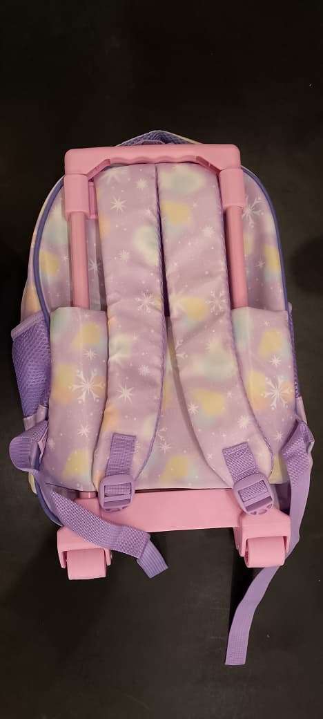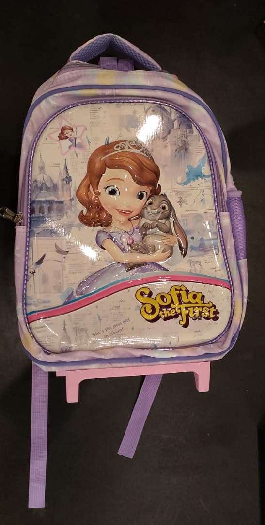 a Disney Sofia The First branded school trolley backpack featuring a 3D design.Â