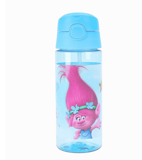 Comes with a capacity of 500ml and a silicone straw which makes it simple for children to sip without spilling water everywhere. Open and shut sipper for easy use of kids. Great for everyday use like for school, sports, after school clubs, days out and holidays. , , Printed with kids favourite character. Universal Trolls Free to Sparkle Water Bottle.