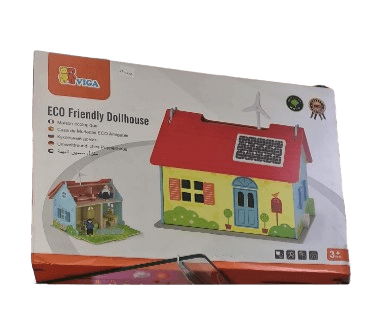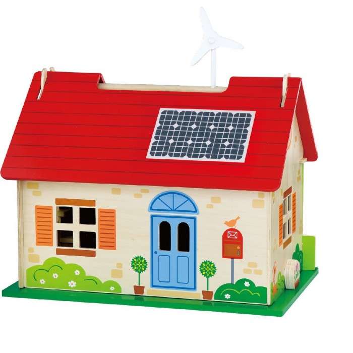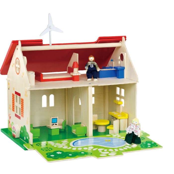 This beautifully crafted and colourful dollhouse comes complete with a 16-piece furniture set, 2 dolls, wind turbine and solar panel.