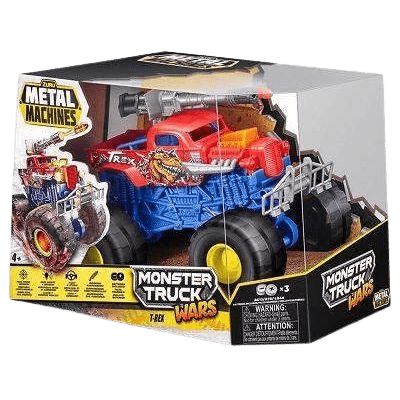 Start revving your engines for Metal Machines Monster Truck Wars! Take it up a gear with this massive monster that demolishes anything in its path. Monster Truck Wars brings free-wheeling fun with next level suspension and pivot & steer action that lets you drive fearlessly. Get ready to rumble with your Jawesome’s roof top firing weapon and tricked out lights and sounds. Crush your competition in the Jawesome Monster Truck, its bite is worse than its bark! Put the pedal to the metal with Metal Machines Monster Truck Wars! – Batteries included.