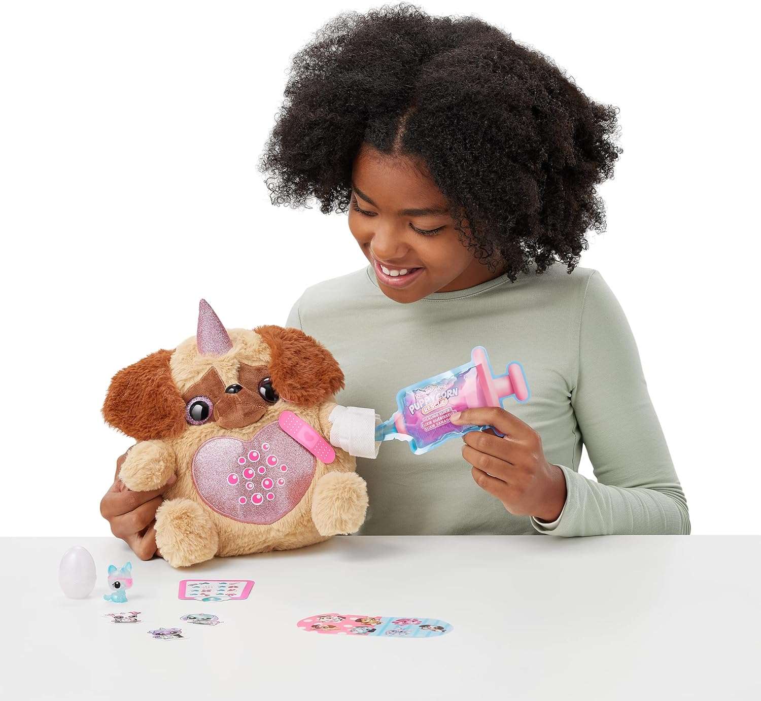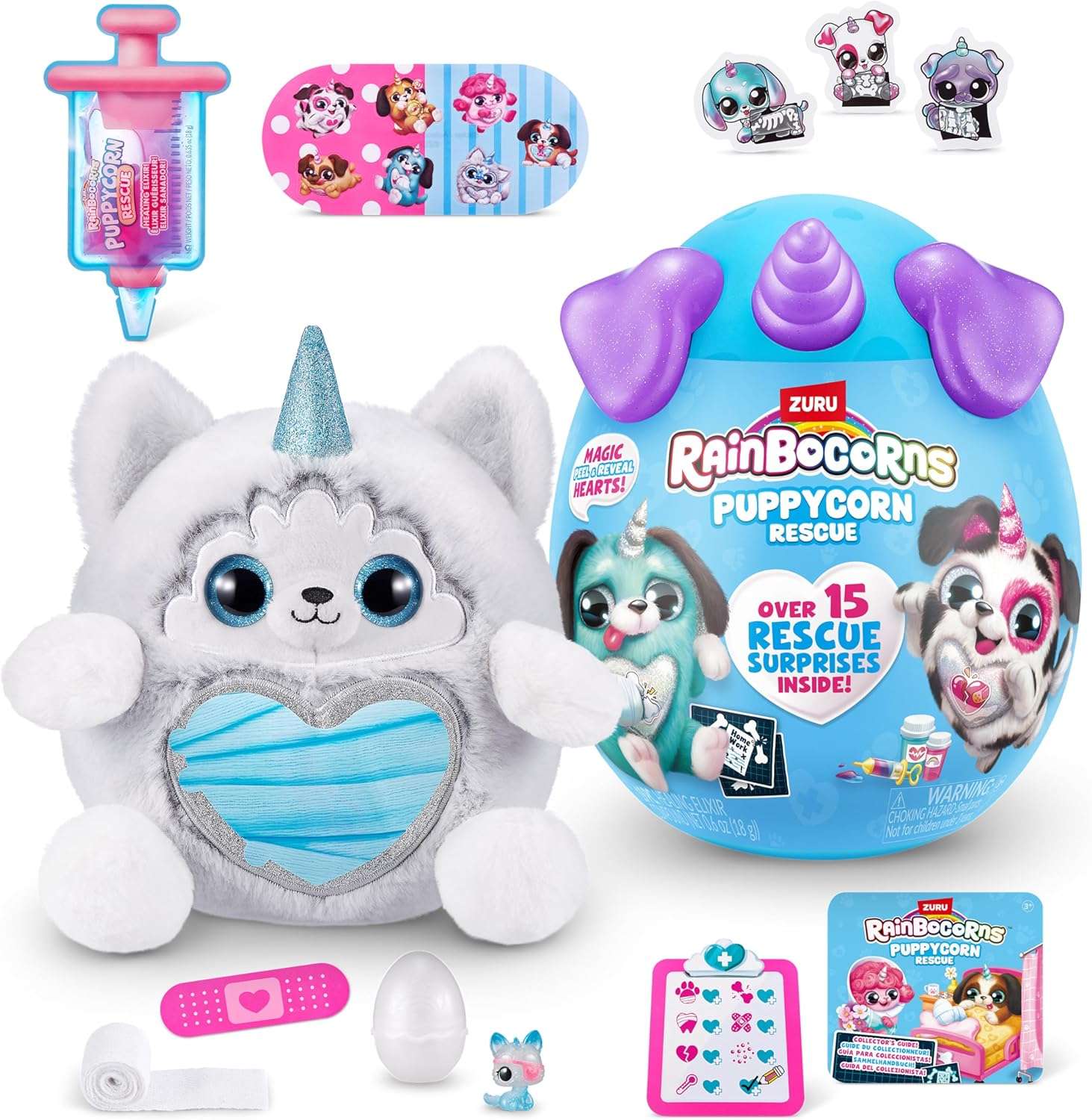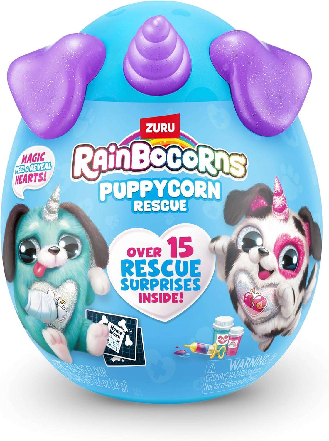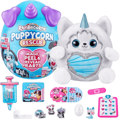 - MORE THAN 12 SURPRISES TO DISCOVER: Help bring Rainboville’s bad puppies back to health with Puppycorns rescue! Each puppy patient comes complete with, a Dr. Boo-Boocorn, Peel ‘n’ heal heart, patches, health report, x-rays, syringe mucus and bandage! Use the surprises to save your Puppycorn!