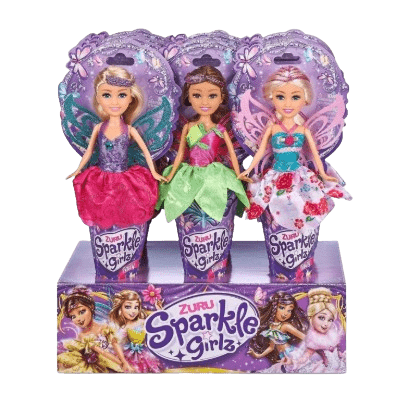 There are 3 gorgeous fairies to collect – which will be your new best friend? Take your new fairy friend with you everywhere, fly her and pose her to show her off to all your friends! All outfits and accessories are interchangeable with other Sparkle Girlz dolls (sold separately). Collect all 12 magical Sparkle Girlz dolls in a cone! Styles may vary.